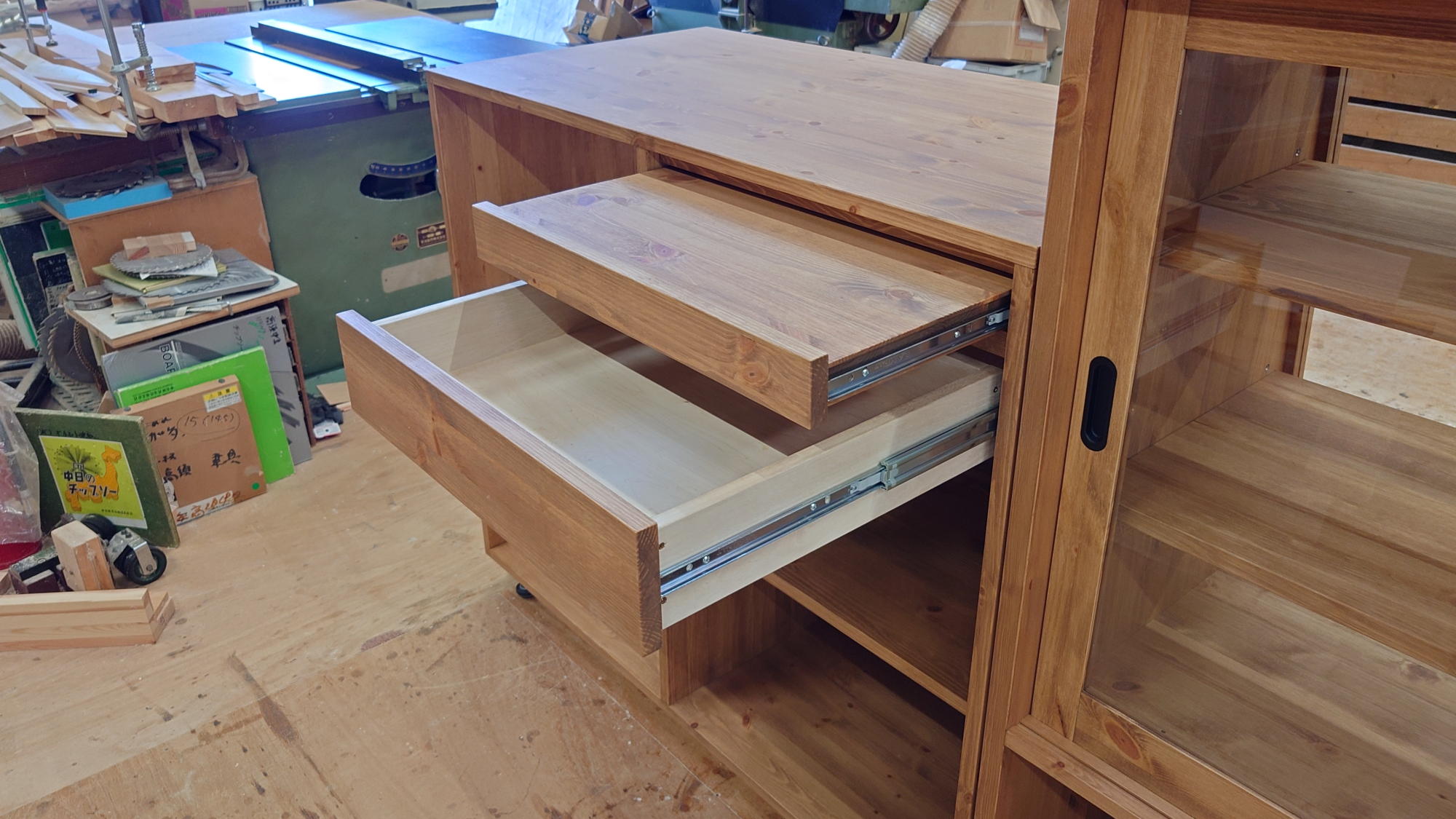 スライド天板と引き出し