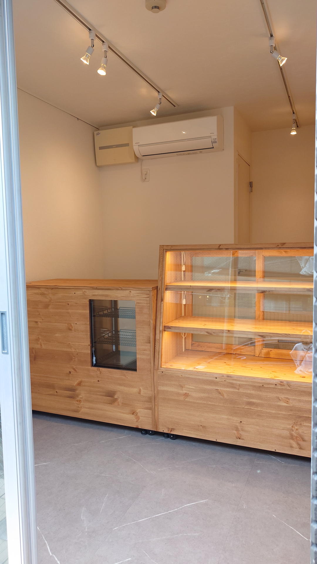 パン屋ショーケースとレジカウンター設置後の店内の様子