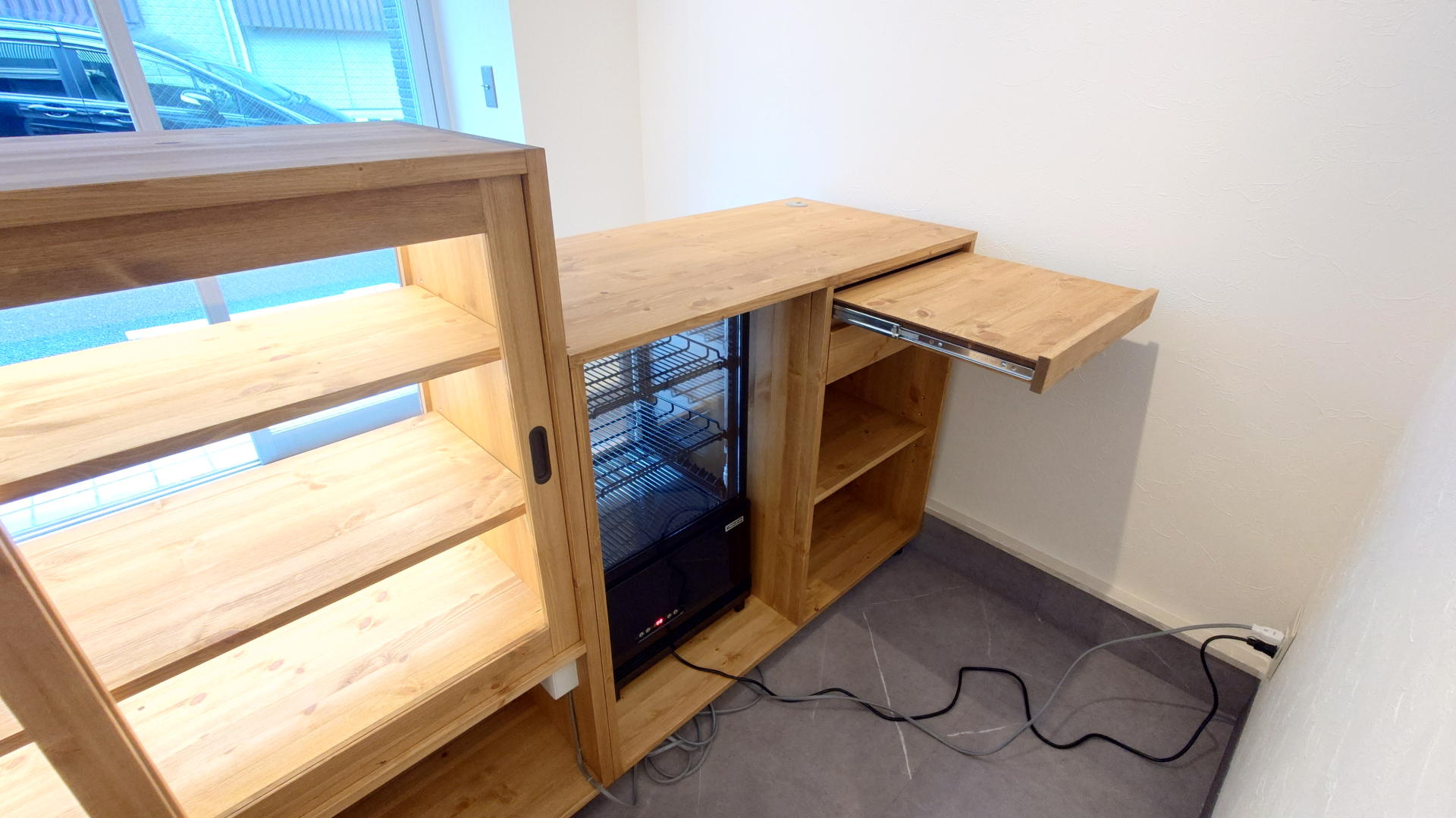 レジカウンター内側のスライド天板